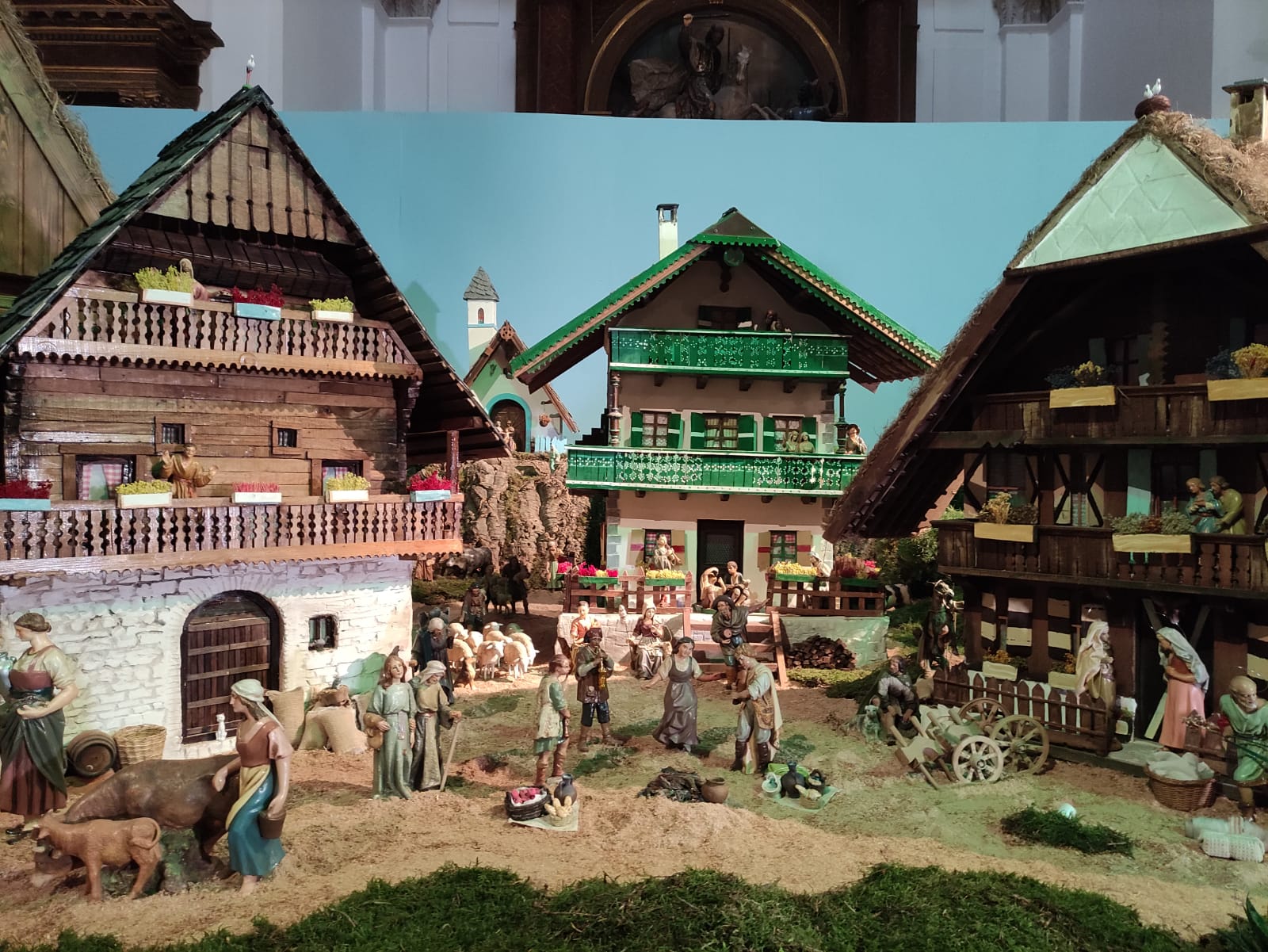 Obra de la familia Angulo, conocidos belenistas en la ciudad, el montaje reúne maquetas de edificaciones históricas inspiradas en las construcciones austriacas tradicionales, que pueden verse en el museo al aire libre de Stübing, además de un palacio inspirado en el de Luis II de Baviera.
